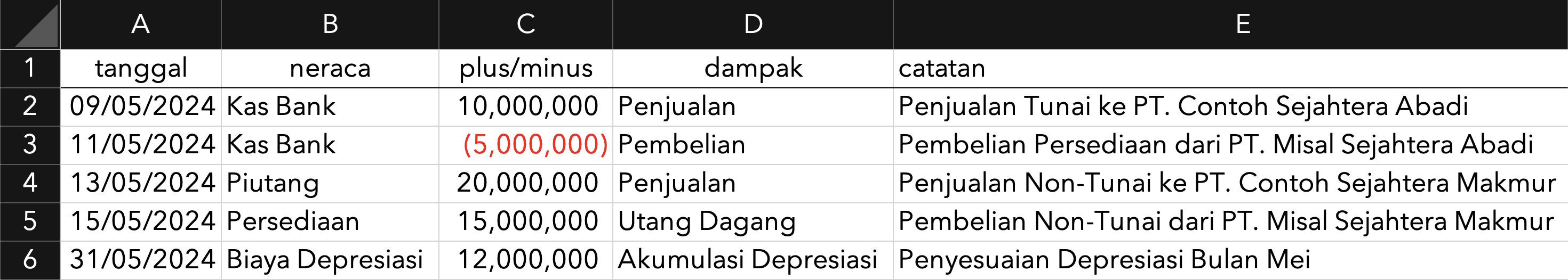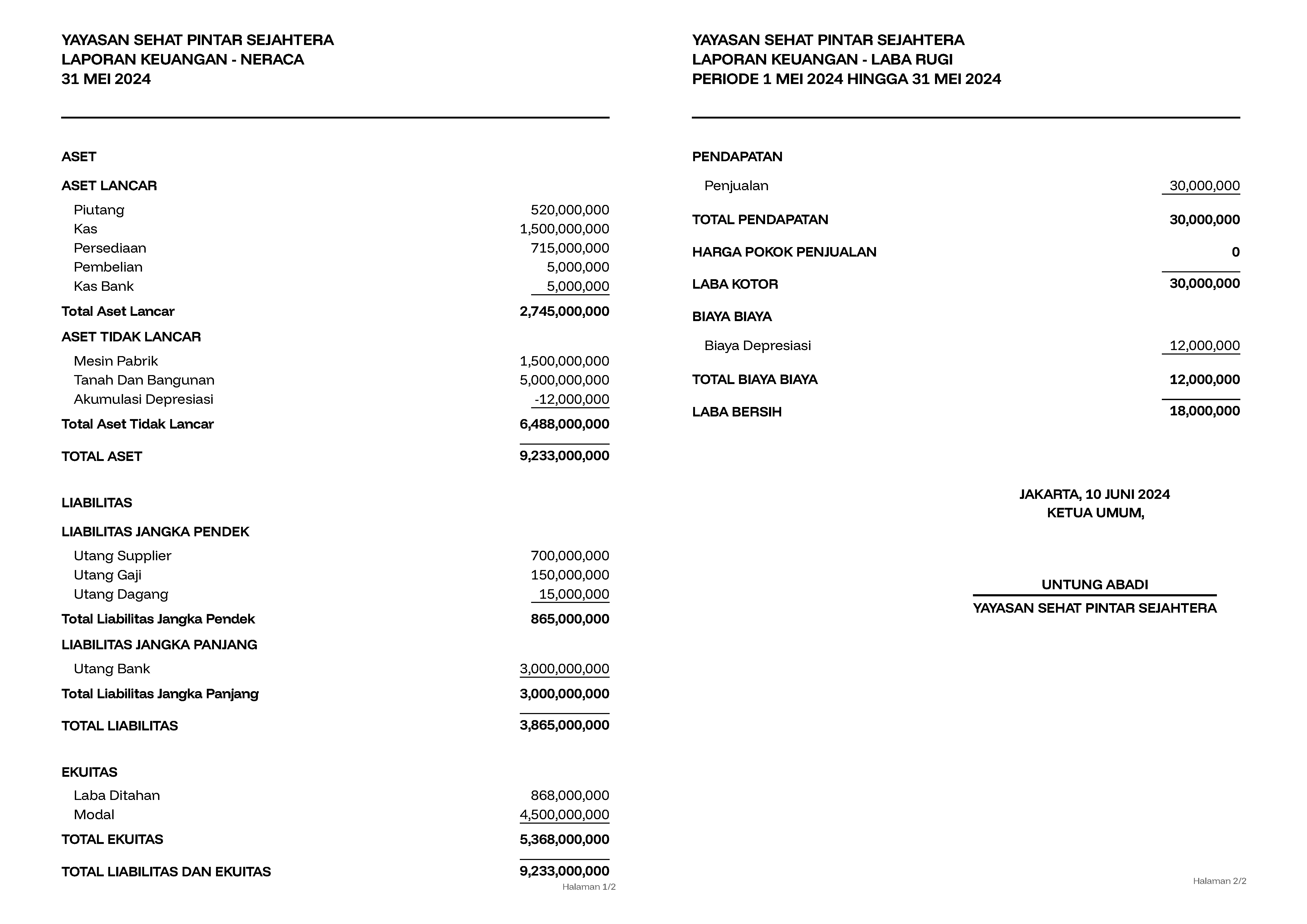 pengaturan untuk bantu analisis dan manajemen (fleksibilitas nama, unduhan XLSX/PDF, ubah dan tambah instan nama, posisi, sub/account, periode, format penandatangan, undo, dll.)